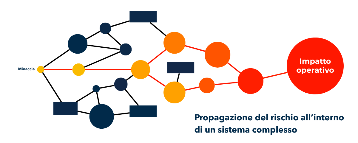 Nel contesto reale delle organizzazioni, infatti, raramente il rischio resta confinato nel punto in cui viene individuato, ma quasi sempre tende a seguire le relazioni tra asset, applicazioni e processi, aumentando l’impatto in funzione dei percorsi al loro interno.